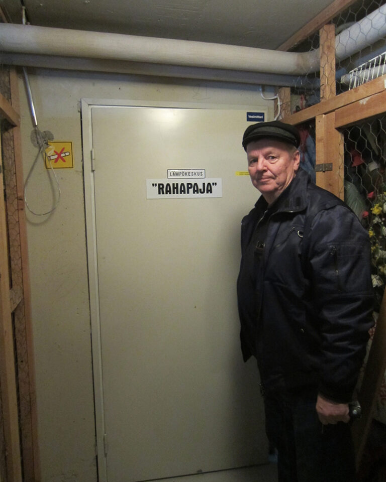 Isännöitsijä Ilkka Kuulasmaa lämmönjakohuoneessa.