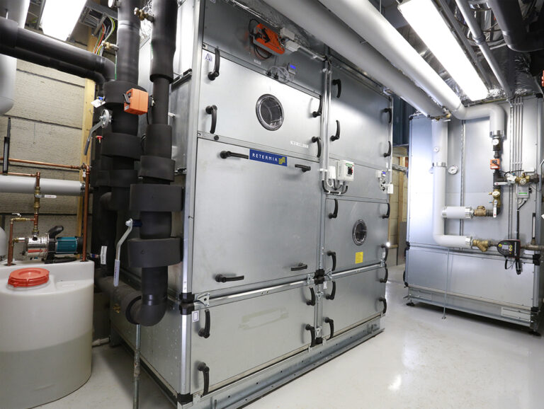 4,4 m3/s. LTO-järjestelmä koostui vesikatolle asennetuista Ilmanottokatoksista ja konehuoneeseen asennetun RETCARE Modular E -koneen LTO-neulalämmönsiirtimistä. RETCARE Modular E -kone valmistettiin RST-peltiin ja neulalämmönsiirtimet korroosiosuojapinnoitettiin.