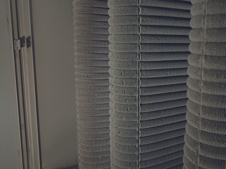 Jauhopölystä likaantunut korroosiosuojapinnoitettu neulalämmönsiirrin.