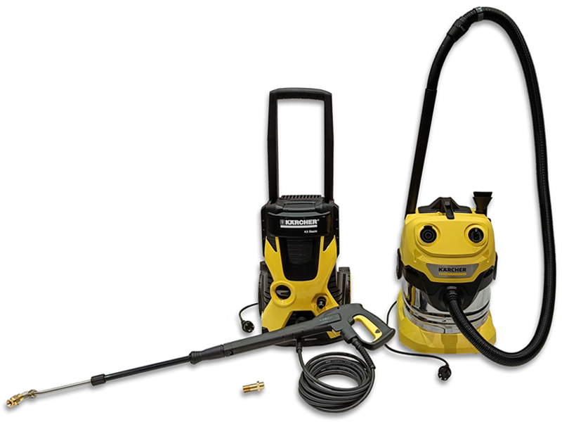 till det objekt som ska servas. Dessutom krävs en elanslutning för högtryckstvätten och dammsugaren.