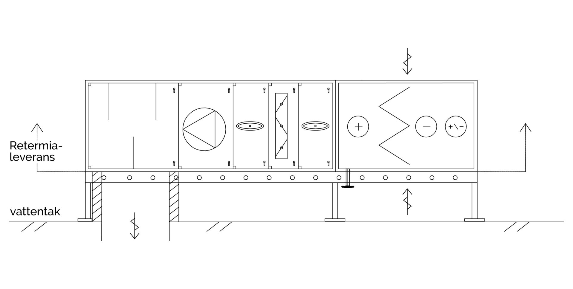 - Besparingar på installationskostnader. RETCARE OUT S -tilluftsaggregat är avsett för installation på ett vattentak. Byggandet av ett maskinrum undviks. Aggregatet har en kompakt design och värmeförlusterna över höljet minimeras.